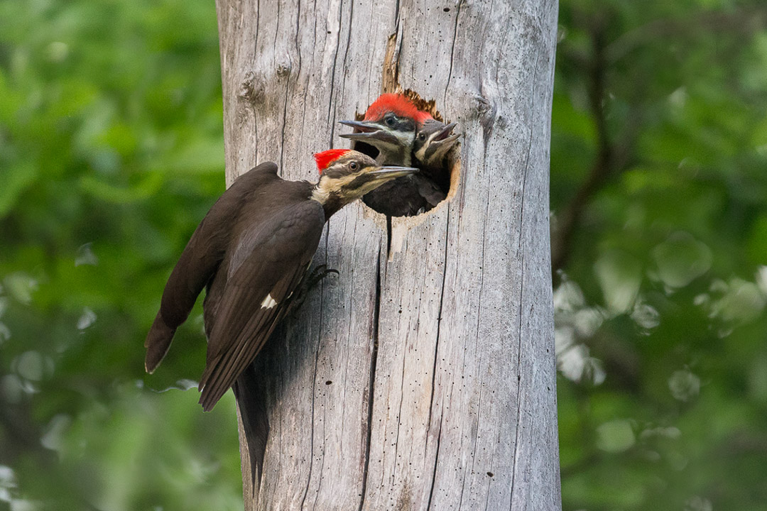 Pileated Woodpecker About to Feed Chicks, New York (Pileated Woodpeckers)