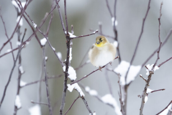 Goldfinch in snow, Cortland, NY (Goldfinches)