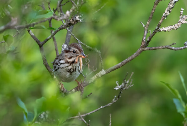 Song Sparrow With Caterpillar, New York (Sparrows)