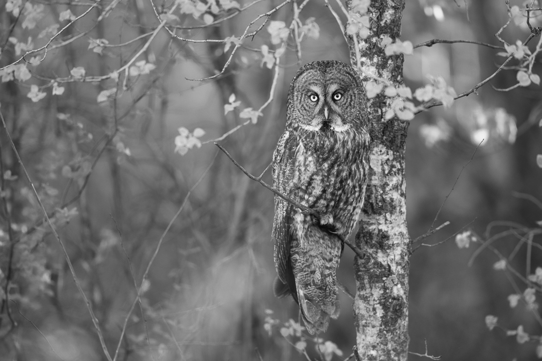 Great Gray Owl in Black and White, Minnesota (Great Gray Owls)