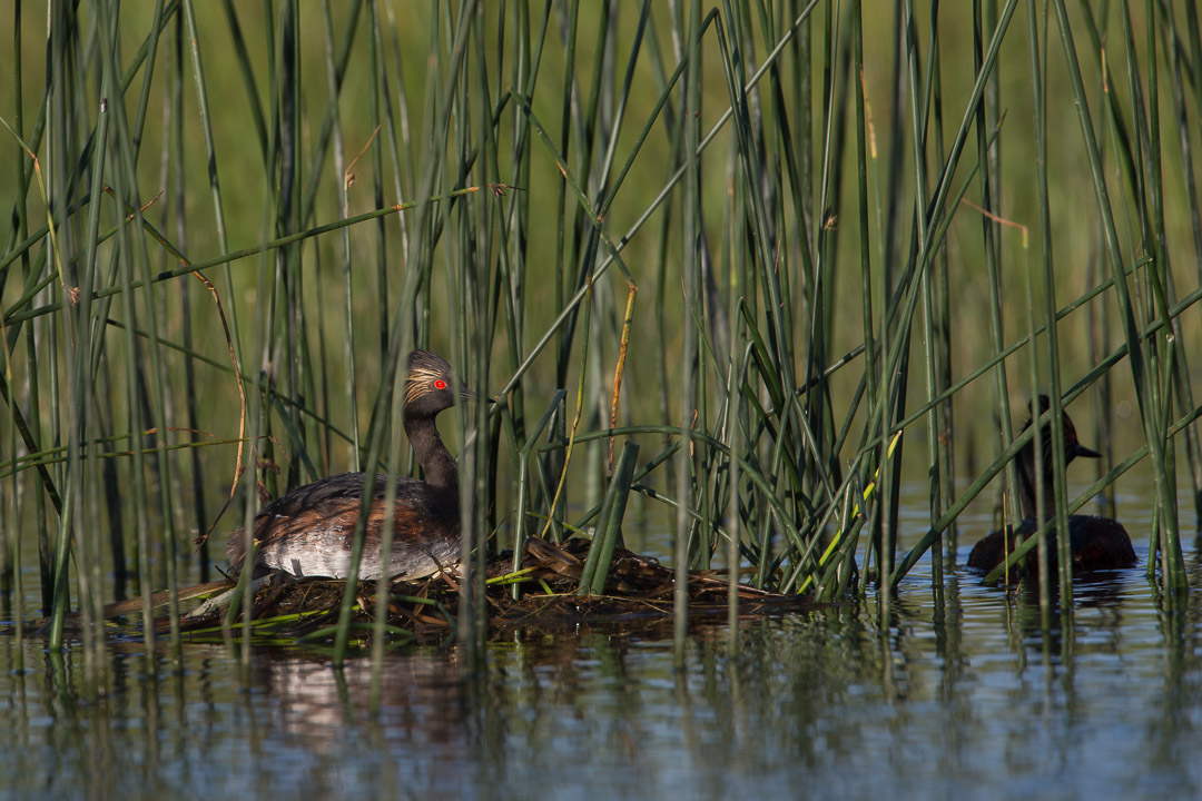 Eared Grebes on Nests in Reeds, North Dakota (Eared Grebe)