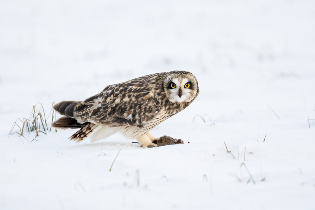 Short-eared Owl With Rodent, Newfield, New York (Short-eared Owls)