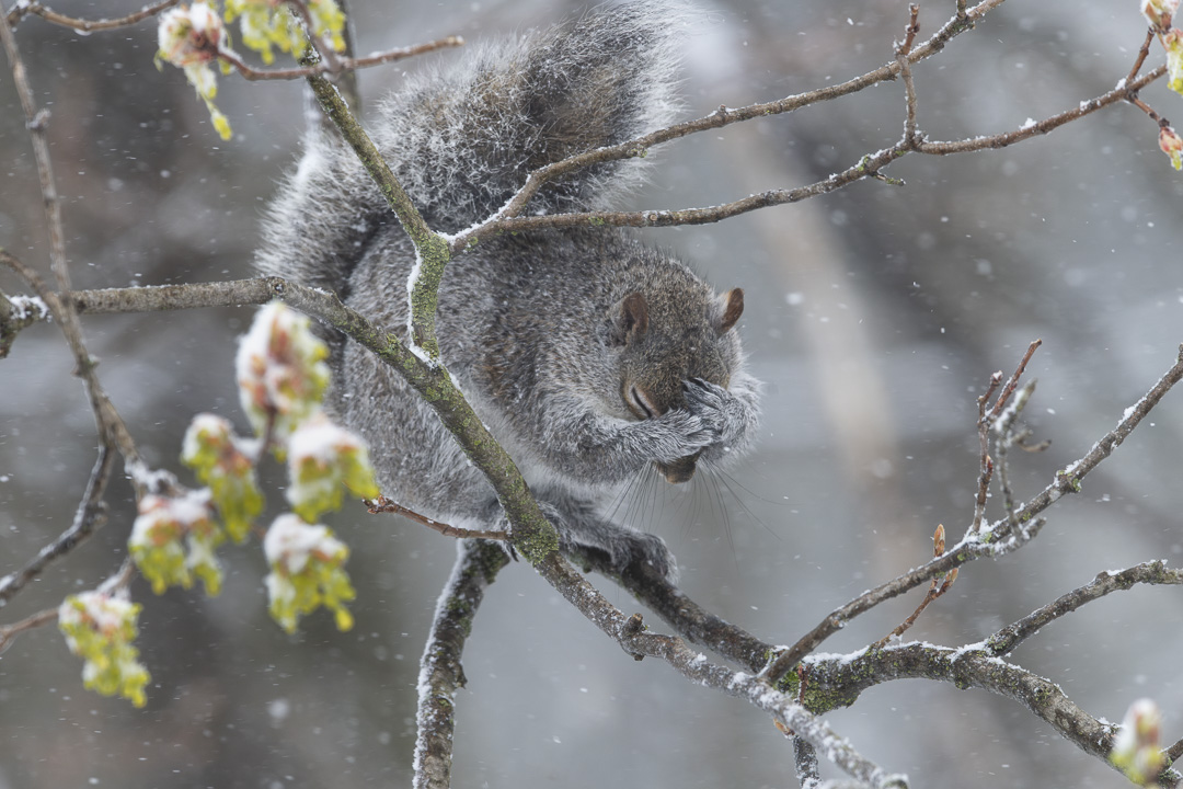 Gray Squirrel Holds Head, Caroline, New York (Gray Squirrels)