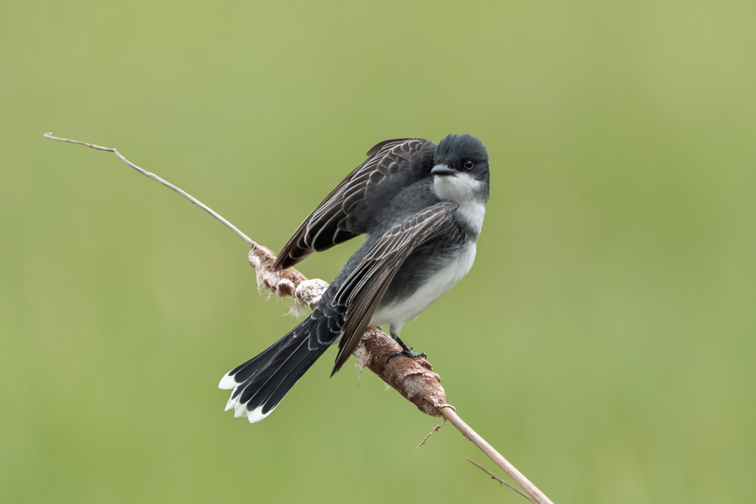 Eastern Kingbird Unfurls Wings Before Lift-off, Ithaca, New York (Eastern Kingbirds)