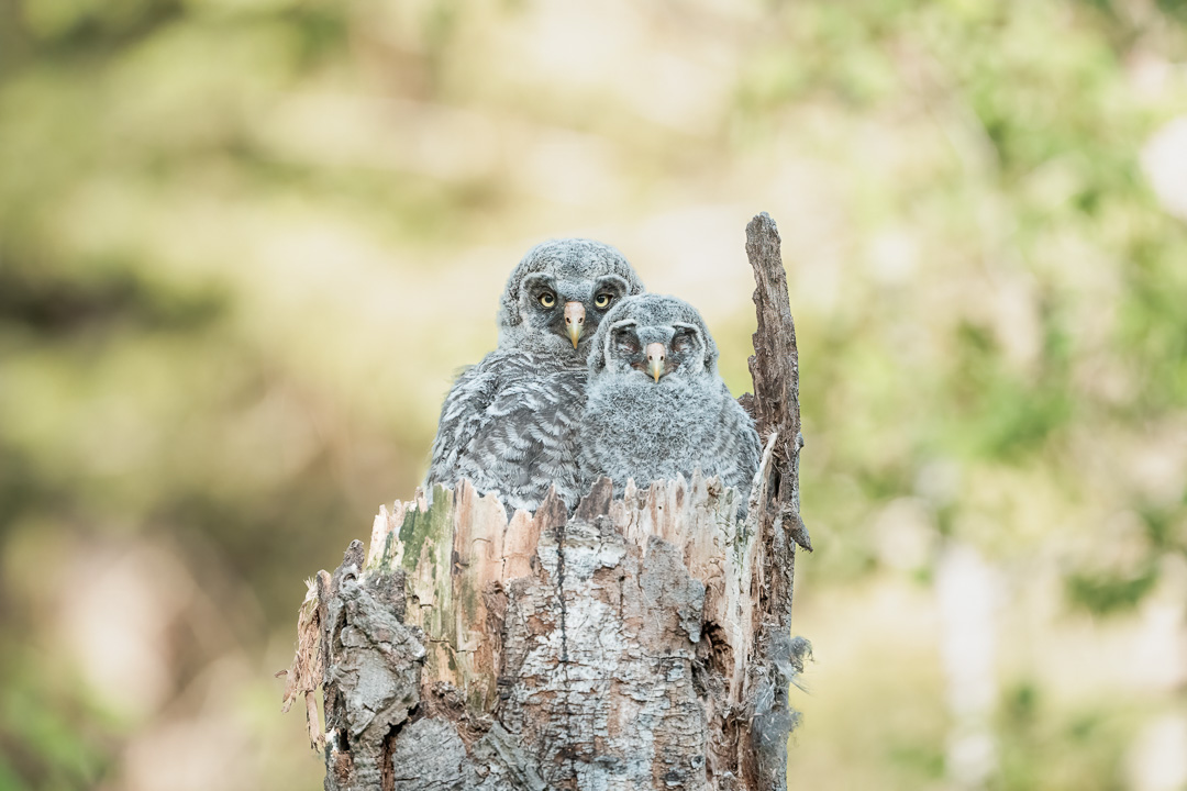 Great Gray Owl Chicks in Nest in Deep Forest, Swan Valley, Montana (Great Gray Owls)