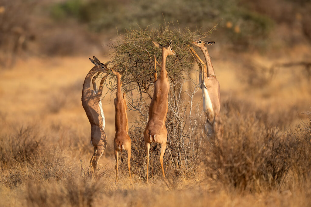 Gerenuks Feeding, Tanzania (Antelopes)