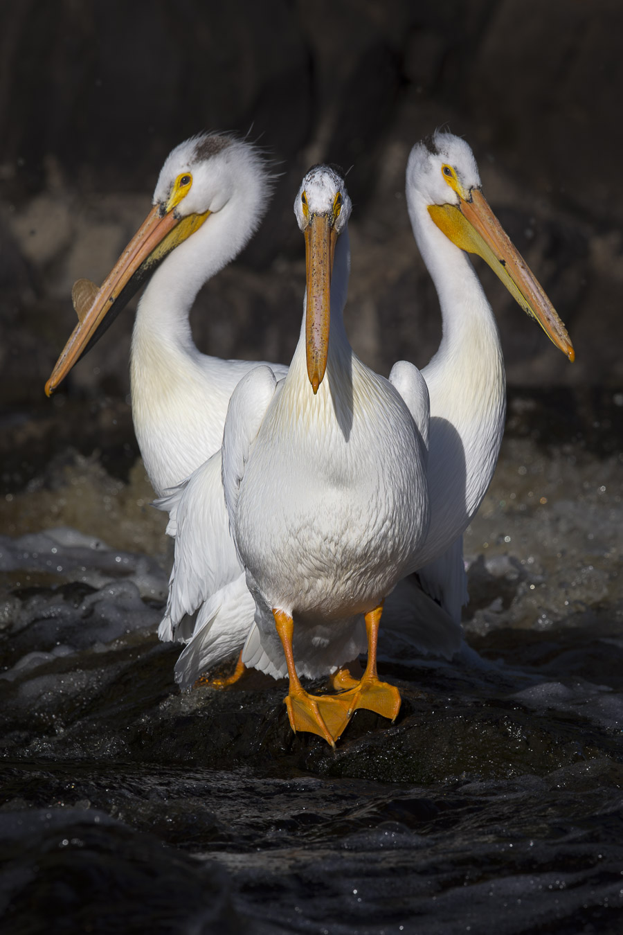 Portrait of American White Pelican Trio, Minnesota (American White Pelicans)