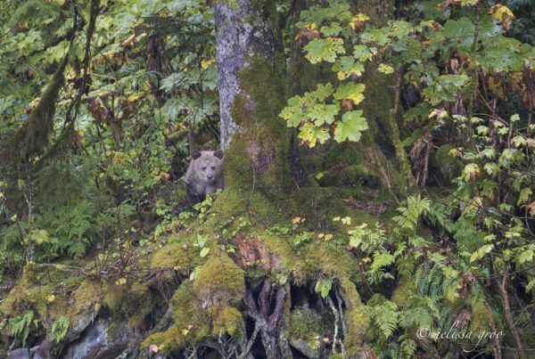Brown Bear Cub Explores the Forest, Great Bear Rainforest, British Columbia (Grizzly Bears)