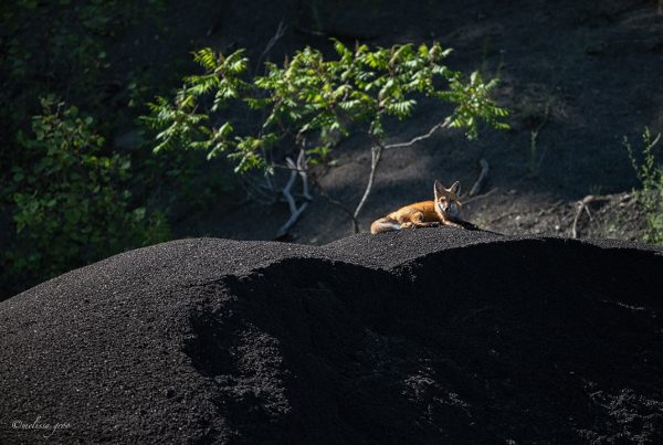Red Fox Kit at Gravel Pit in Morning Sun, New York (Red Foxes)